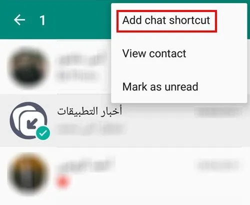 إذا كنت تريد الوصول لجهة إتصال معينة بصورة سريعة بدون الدخول حتي لبرنامج الواتساب يمكنك إنشاء اختصار لجهة الإتصال بجانب التطبيقات الاخري لسهولة الوصول إليها عن طريق إختيار جهة الاتصال و من قائمة الخيارات اختر Add chat shortcut .