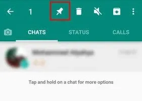 وتستخدم هذه الميزة حينما تقوم بإستمرار بالمحادثة مع شخص معين وتريد أن تكون محادثة هي الأولي دائما علي الواتساب ويمكنك عمل ذلك عن طريق قم بالضغط على المحادثة ثم الضغط على أيقونة التثبيت أو الدبوس كما هو موضح بالصورة. يمكنك تثبيت أكثر من محادثة .