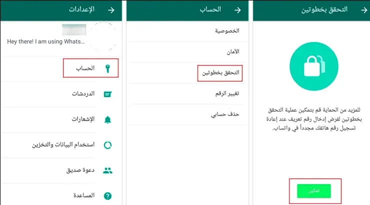 الخطوة الثالثة هي تفعيل المصادقة الثنائية على تطبيق الواتس أب