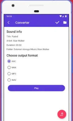 - يدعم التطبيق تحويل الفيديو إلي صيغ صوتية متعددة وحفظها .